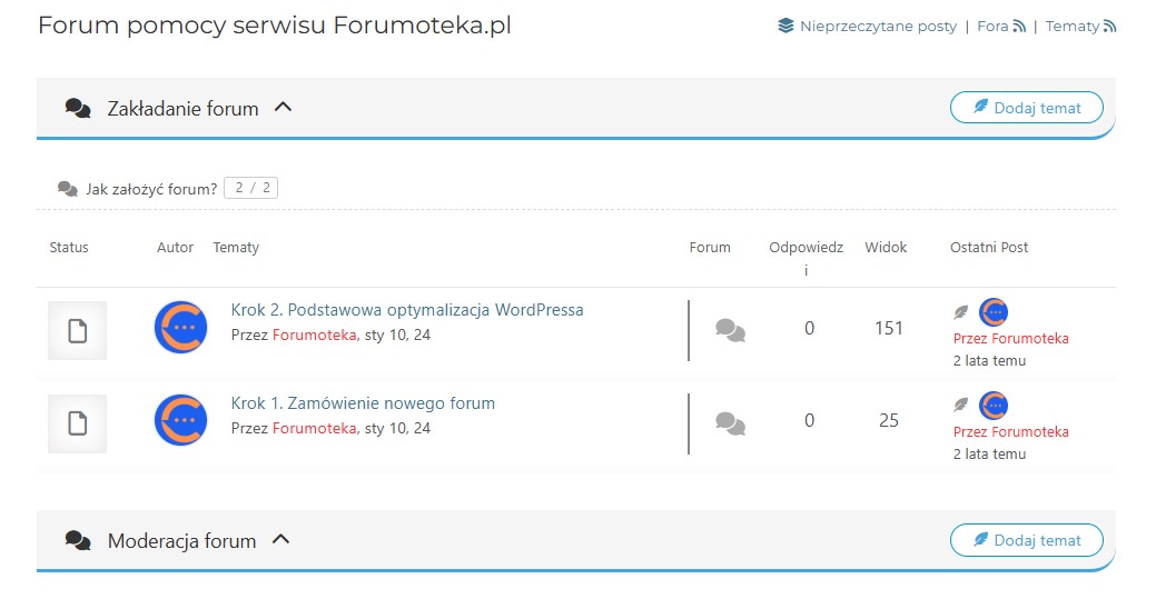 Jeśli udało Ci się utworzyć pierwszą kategorię i forum, to pamiętaj o dodaniu nowego tematu.